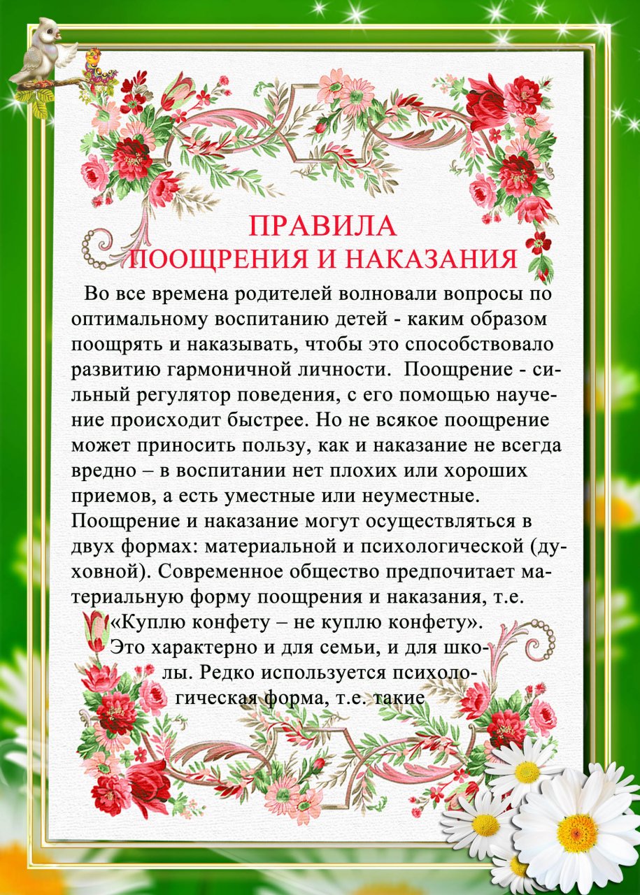 Правила поощрения и наказания