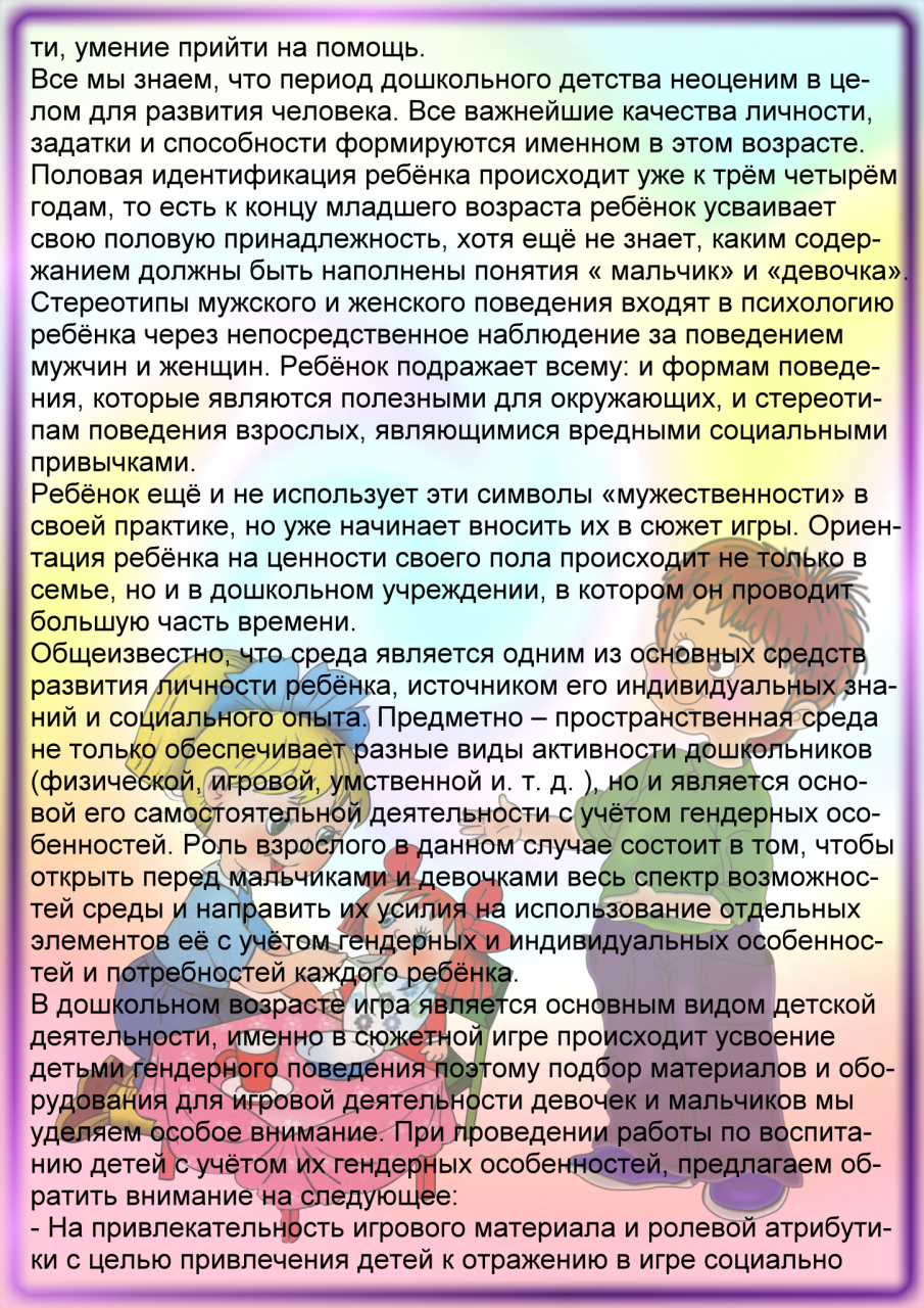 Гендерное воспитание детей через игру