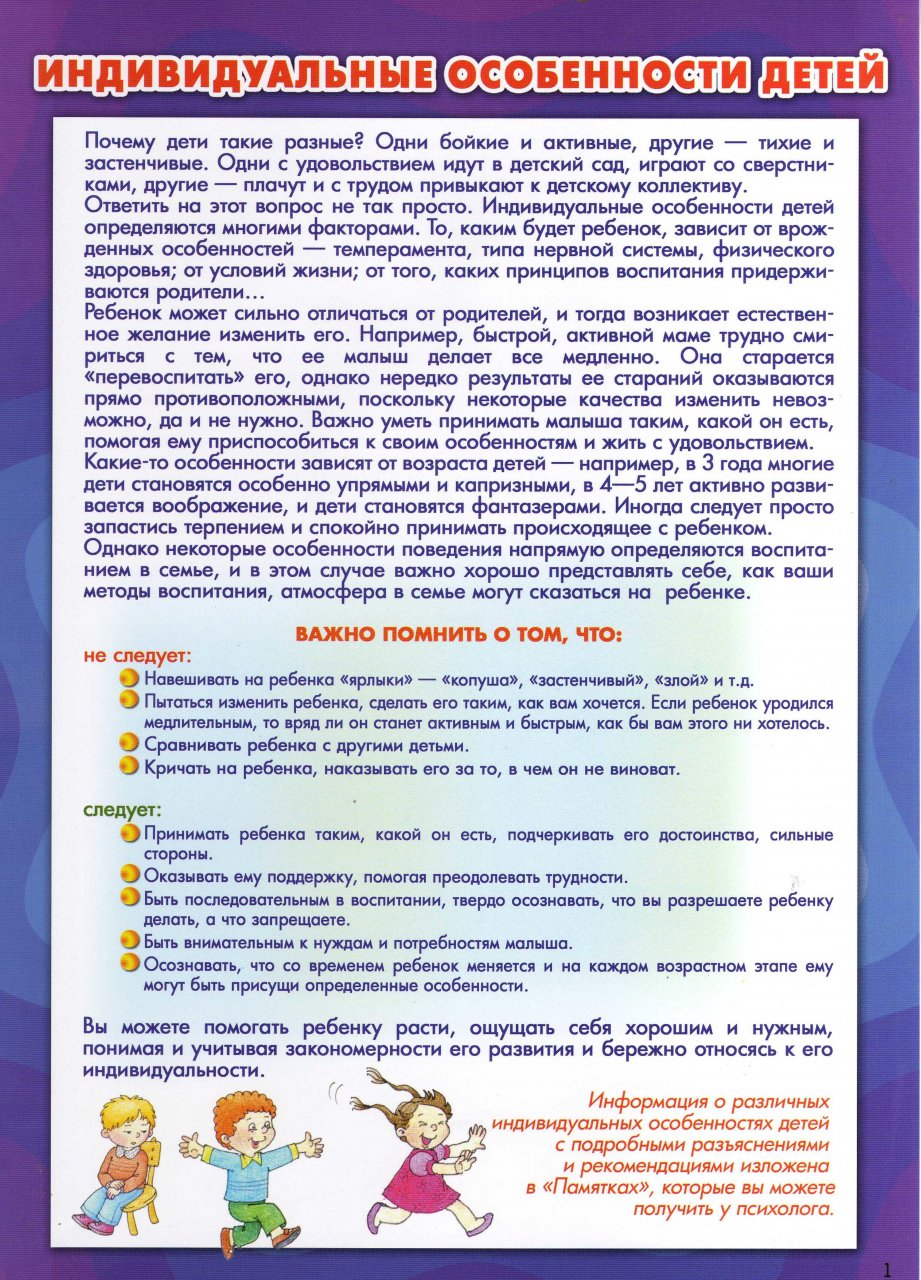 Индивидуальные особенности детей