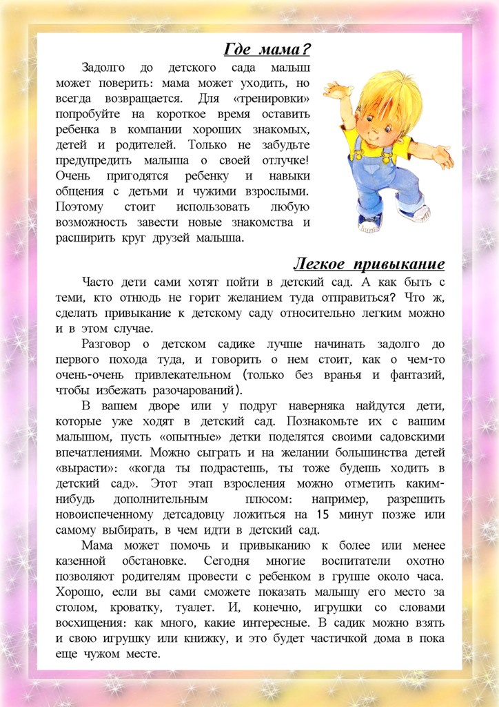 Как помочь ребенку освоиться в детском саду