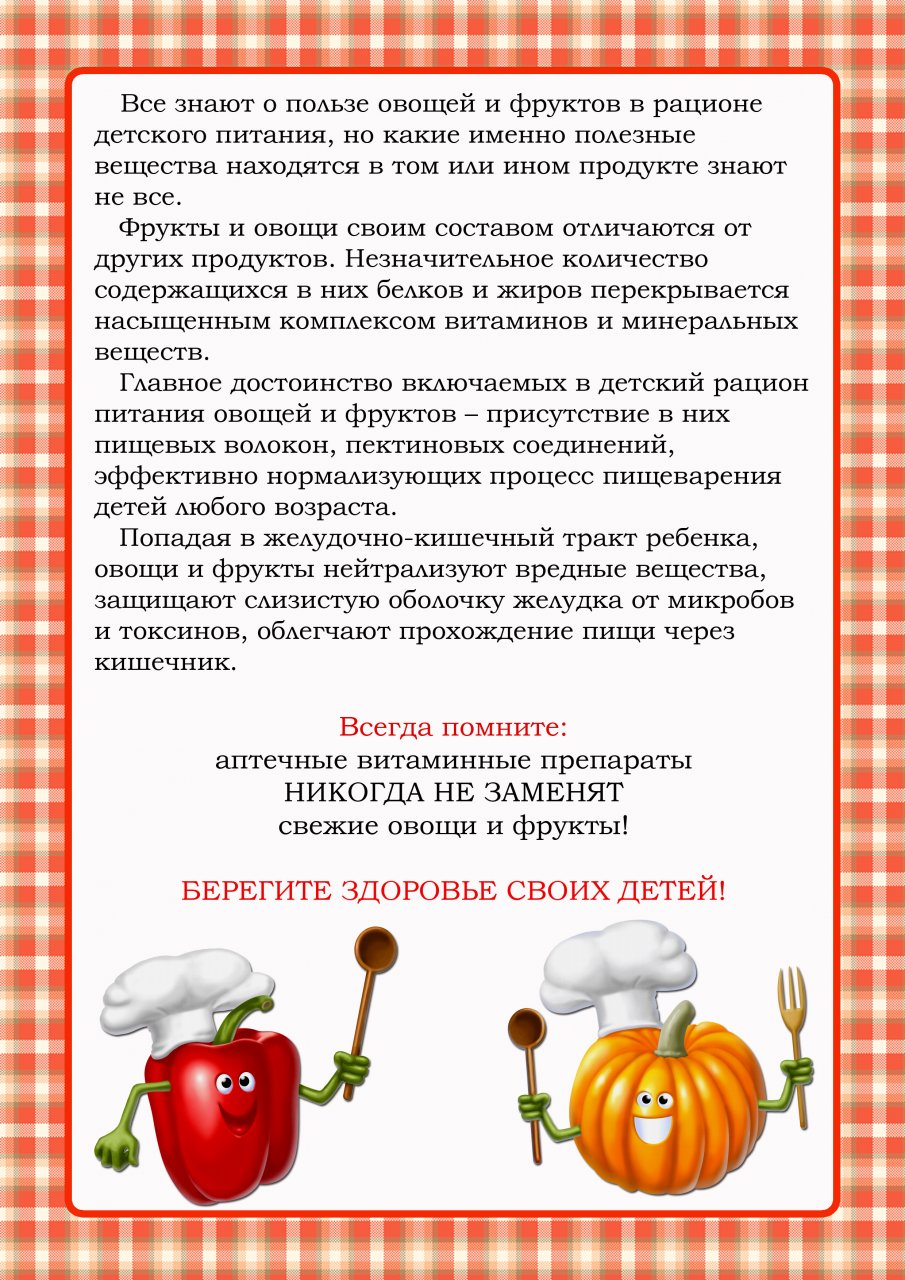 Овощи и фрукты ценные продукты